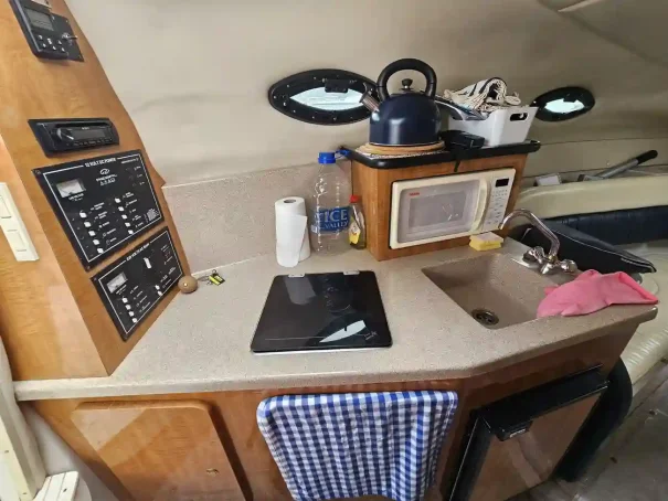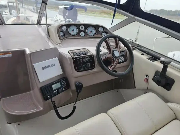 Dancing with Waves is 2002 Regal 2665 Commodore. She is a practical and well-maintained boat, ideal for day cruising and weekend trips. She is powered by a Volvo KAD32, 170hp diesel engine that provides reliable performance and good fuel efficiency. The cockpit layout supports easy movement and comfortable seating for guests, with a clear, functional helm station. The cabin includes a convertible berth, compact galley, dining area, and enclosed head, giving you the essentials for overnight stays. Storage is well distributed throughout the boat for gear and supplies. Solid build quality and manageable size make it suitable for new or experienced owners. A straightforward, capable cruiser at a fair value.