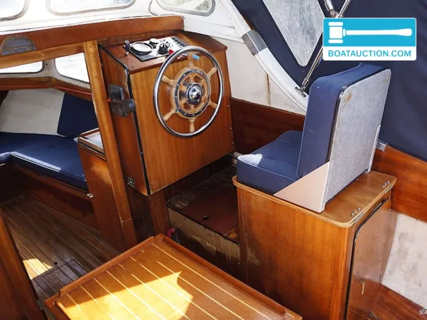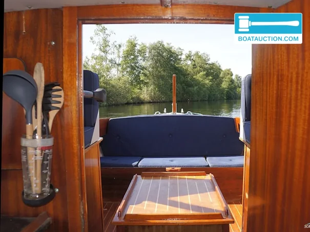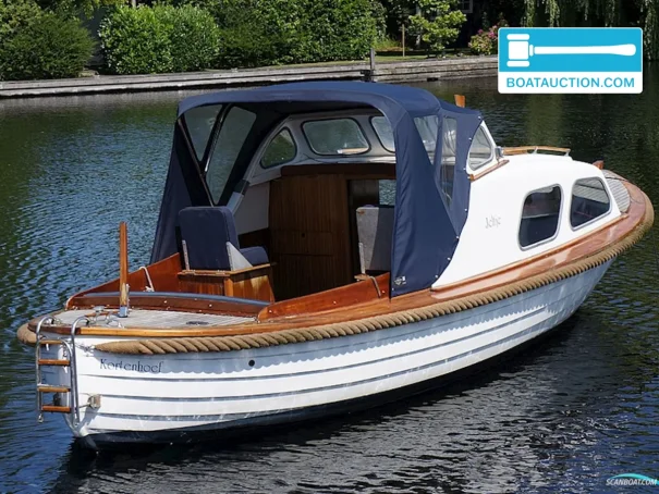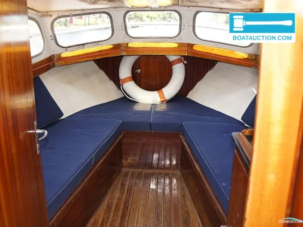 La Polar 22 de 1965 est un classique scandinave à bordés à clin, de type spitsgatter, immédiatement reconnaissable à ses lignes intemporelles et à sa conception compacte et fonctionnelle. Avec une longueur d’environ 7,00 mètres, une largeur de 2,00 mètres et un tirant d’eau d’environ 1,00 mètre, c’est un bateau à moteur à l’aise sur les eaux intérieures, canaux et lacs, tout en offrant une bonne tenue de cap sur des plans d’eau plus ouverts par météo favorable. La coque est en polyester, ce qui rend le bateau accessible aux propriétaires recherchant une allure classique avec les avantages pratiques d’un matériau moderne. Cette Polar 22 est en état correct et a encore été sortie de l’eau en 2024 pour entretien, l’antifouling ayant également été réalisé en 2024.