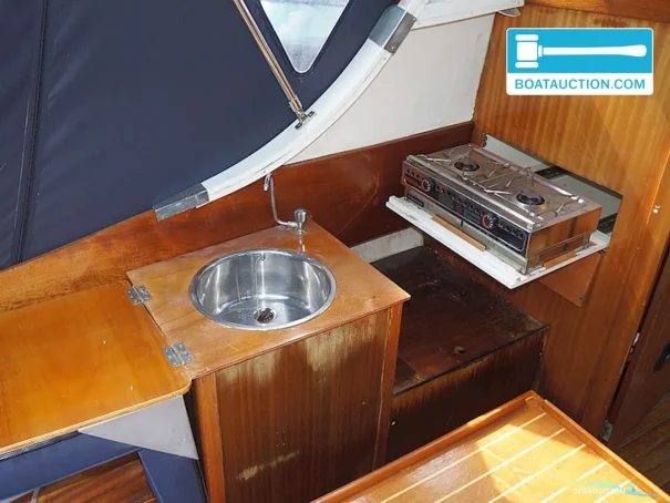 Dans la cabine, vous trouverez un coin salon en U convertible en couchage double, en complément des deux couchages fixes. Pour un bateau de 7 mètres, c’est une combinaison attrayante : un espace salon confortable le jour, et une solution de couchage le soir pour un week-end ou de courtes vacances sur l’eau. Il y a en outre suffisamment de rangements et de coffres pour stocker de manière organisée les effets personnels, les provisions et l’équipement de bord. Le bateau a récemment été équipé de nouveaux coussins et d’une nouvelle capote cabriolet, ce qui améliore le confort et l’esthétique à bord.