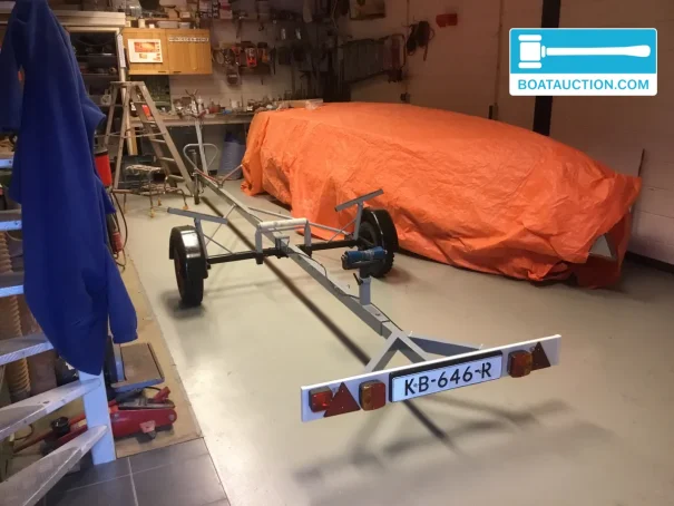 Ce Spanker 712 est livré avec une remorque routière de la marque Wijko. Il s’agit d’une remorque non freinée à un essieu, équipée d’un treuil et d’une rampe d’éclairage. Avec un poids indiqué d’environ 250 kg, c’est un ensemble pratique pour ceux qui souhaitent stocker le bateau à domicile, naviguer sur différents plans d’eau ou passer la saison hivernale de manière efficace. Le transport sur remorque rend ce voilier particulièrement attractif pour les plaisanciers recherchant de la flexibilité et ne voulant pas dépendre d’une place de port fixe.