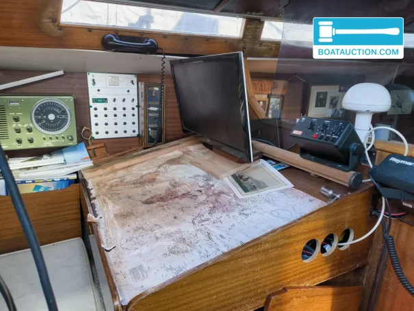 pour les manœuvres au port et les heures au moteur sur les voies intérieures, un moteur diesel inboard perkins est présent : un 4 cylindres de 40 ch avec démarrage électrique. le moteur est en état de fonctionnement. des instruments tels que jauge de carburant, manomètre de pression d’huile et indicateur de température facilitent l’usage quotidien et donnent une visibilité sur l’état du moteur en navigation.