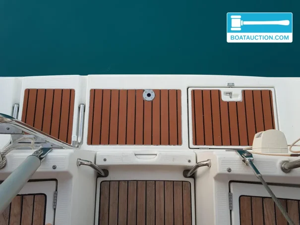 L’Oceanis 473 Clipper est reconnu comme un cruiser confortable à l’aménagement pratique. Le pont est revêtu de teck, ce qui contribue non seulement à l’esthétique, mais aussi à l’adhérence et au confort lors des déplacements sur le pont. Dans le cockpit, les deux postes de barre offrent visibilité et espace ; un atout majeur lors des manœuvres au port et en navigation avec plusieurs personnes à bord. Le cockpit auto-videur, la table de cockpit, la capote et le bimini rendent l’ensemble adapté aux longues journées sur l’eau, y compris par temps ensoleillé ou changeant. Une plateforme de bain avec échelle augmente le plaisir au mouillage, tandis que les sièges de balcon avant et arrière ainsi que les filières contribuent à la sécurité et à la facilité d’usage.