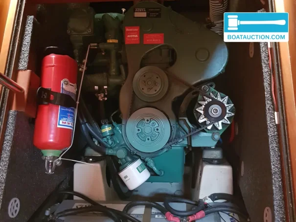 Le moteur diesel inboard Volvo Penta TMD22-P (78 ch, 4 cylindres) constitue une base solide pour les heures moteur en mer et au port. Avec environ 2800 heures de fonctionnement, c’est un moteur ayant déjà fait ses preuves. La consommation annoncée d’environ 4 litres par heure et un réservoir diesel de 230 litres offrent une autonomie utile pour les traversées ou les longues étapes au moteur par petit temps. La vitesse de croisière autour de 13 km/h et une vitesse maximale d’environ 17 km/h correspondent à un yacht de cette catégorie. Pour un contrôle supplémentaire lors des accostages, un propulseur d’étrave électrique est présent, un avantage notable notamment dans les places étroites ou par vent de travers.