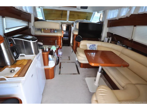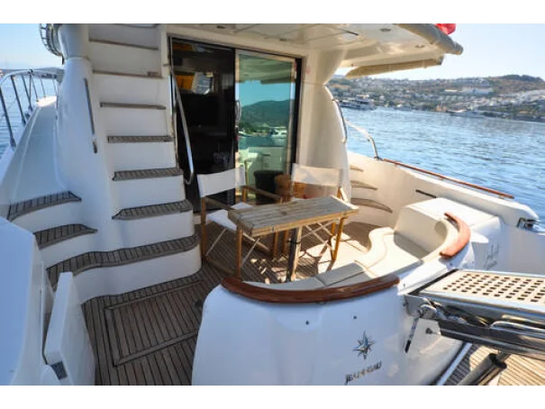 • The 2008 Jeanneau Prestige 46 is a flybridge motor yacht, ideal for comfortable cruising with its spacious interior and elegant design.