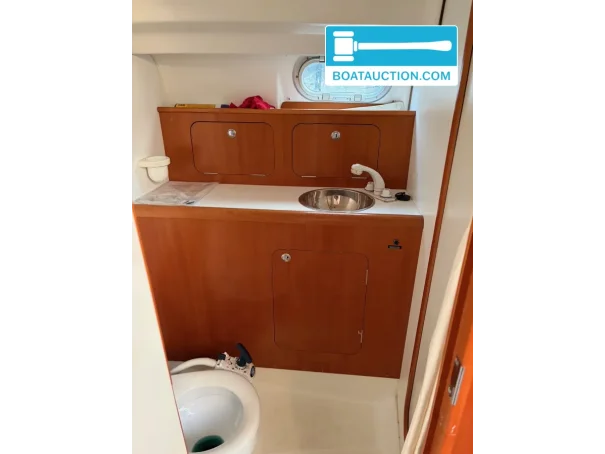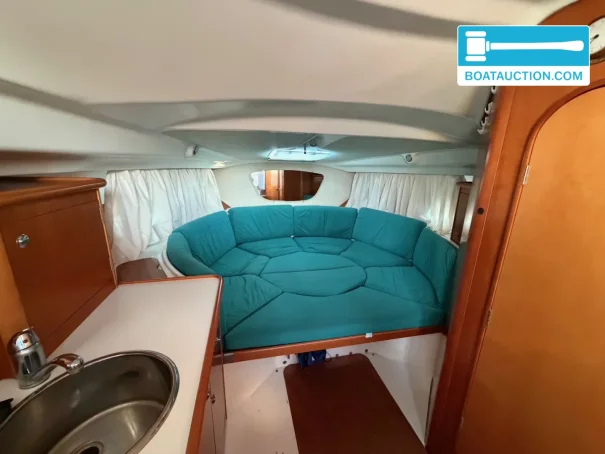l’espace de vie comprend un coin repas, des matelas, un réchaud et un réfrigérateur, permettant une bonne autonomie à bord. l’eau chaude est fournie par un boiler pouvant fonctionner via le moteur ou électriquement, pratique après la navigation ou au port. une douche et des toilettes manuelles sont présentes ; l’évacuation des toilettes se fait directement vers les eaux libres, point à considérer selon la zone de navigation et la réglementation locale. le réservoir d’eau douce a une capacité d’environ 100 litres.