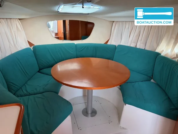 le beneteau flyer viva 9.20 est une référence appréciée dans le segment des sport-cruisers : un bateau qui combine le comportement dynamique d’un bateau à moteur rapide avec le confort d’un cabin-cruiser compact. cet exemplaire de 1999 est construit en polyester et mesure 9,20 m de long pour 3,13 m de large, avec un tirant d’eau pratique d’environ 0,70 m. il convient ainsi aussi bien aux grands plans d’eau qu’aux voies intérieures et aux lacs, où, d’après son historique, il a principalement été utilisé. le résultat : un cruiser qui invite aux sorties à la journée, aux week-ends et aux séjours détendus à bord.