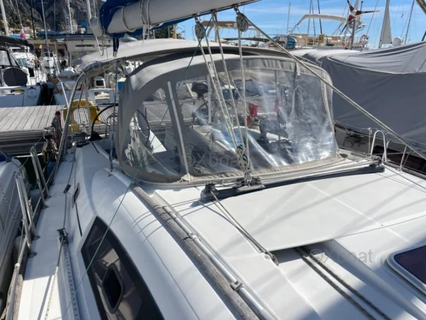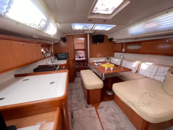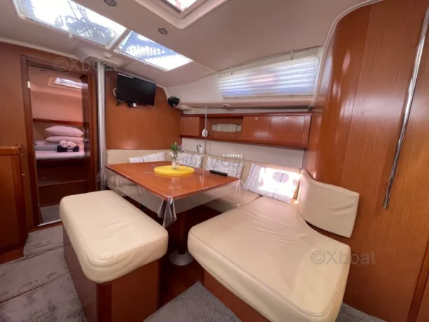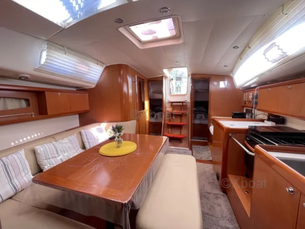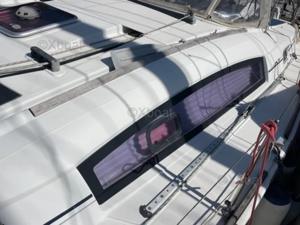 XBOAT ref :6309. nous mettons en vente notre voilier Océanis 40, mis à l’eau en 2009. Ce bateau a été soigneusement entretenu, régulièrement amélioré et il est aujourd’hui parfaitement prêt à naviguer, que ce soit pour la croisière côtière ou la navigation hauturière. C’est un voilier fiable et confortable, pouvant accueillir jusqu'à 12 passagers ; idéal pour qui souhaite vivre à bord ou partir en grande croisière en toute autonomie. Voilure ; Grand-voile lattée, bon état ; Genois sur enrouleur bon état . Aménagements intérieurs : 3 cabines / 6 à 8 couchages , carré spacieux, lumineux et convivial, composé d'un grand canapé pouvant accueillir facilement 6 personnes, cuisine équipée : 1 four électrique, 1 four gaz, 1 plaque gaz, 1 plaque électrique, frigo, 2 éviers ; 2 Salles d’eau : WC marin + douche fonctionnelle, en excellent état, Équipements & électronique : 2 barres à roue, pilote automatique + Wind Pilot GPS traceur (NMEA multiplexer, Wi-Fi, infos AIS sur téléphone), Sondeur, VHF, AIS (récepteur, émetteur), Guindeau électrique ; Girouette électronique, Bimini intégral gris-beige neuf (2025) : capote, bimini, joues et raccords ; Pompes de cale (à membrane + avec flotteur intégré) ; 2 Cuves à eau d'un total de 360L ; Climatisation d'origine réversible 220 V ; passerelle en carbone ; hauts parleurs extérieurs ; Entretien & travaux récents : carénage & antifouling réalisés en 2024 et 2025, jamais talonné, varangues saines, TVA acquittée.