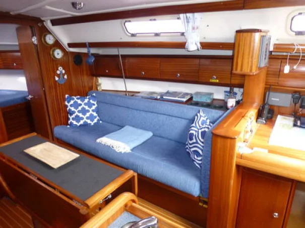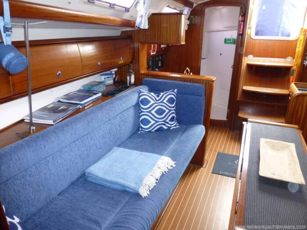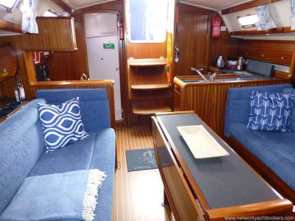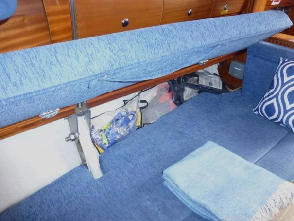 Both settees have hinged backrests that lift for extra room when used as a single berth or for extra storage, lee cloths fitted to both settees.