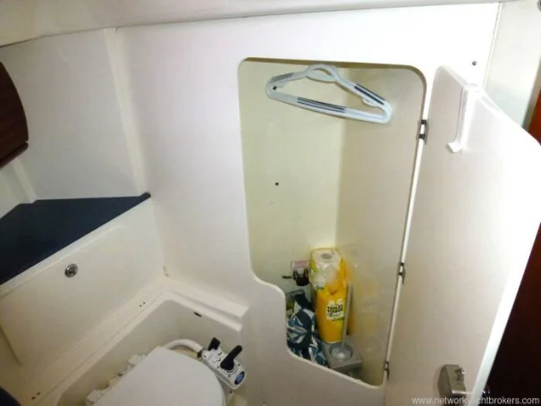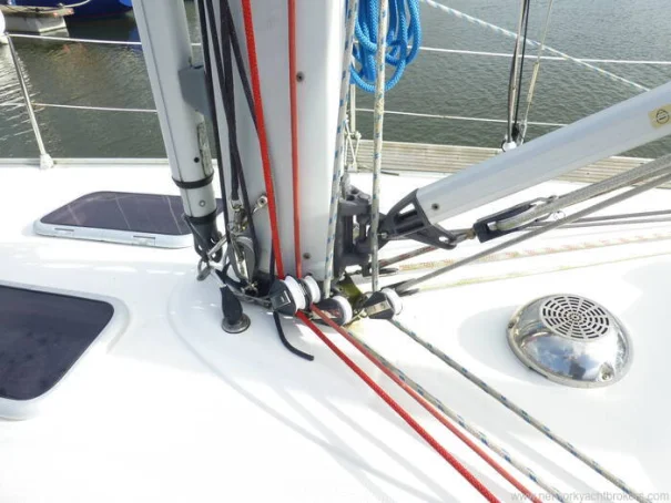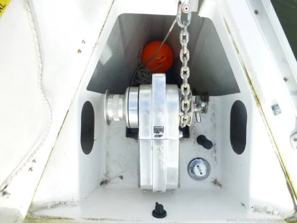 Opening roof hatch and opening portlights, storage lockers, curtains and hatch blinds. LED cabin lighting throughout