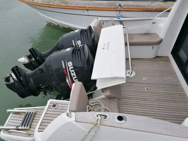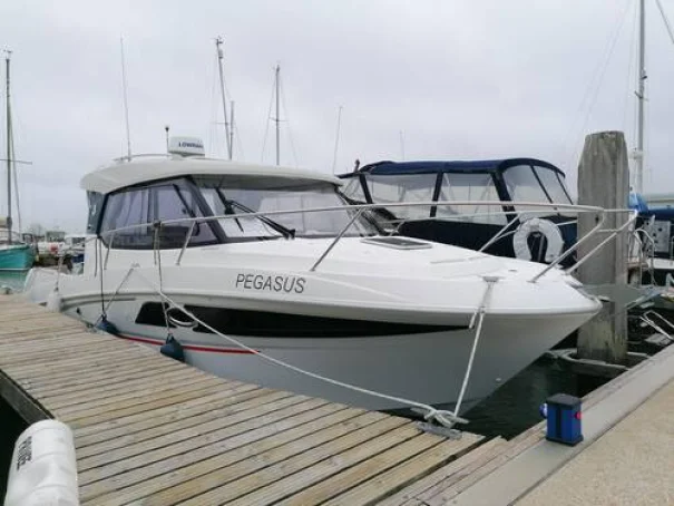 The Beneteau Antares 8.80 is a stylish and versatile motor yacht with a good turn of speed and classy accommodation. Powered by two 150 hp Suzuki engines, 'Pegasus' will carry you across the water at up to 32 knots whilst cruising comfortably at around 20 knots. She sleeps 6 in a spacious front and aft cabins and a convertible saloon. There is plenty of headroom in the saloon and the helm position offers a great near 360-degree view of the water. This is the ideal boat for families or friends to cruise offshore and along coastlines. With a maximum draft of 1m the Beneteau Antares is also excellent for exploring rivers. Perfect for day trips, weekend trips and longer voyages the Beneteau Antares 8.80 provides a combination of comfort and excitement typical of Beneteau's.