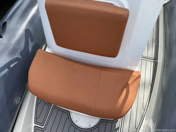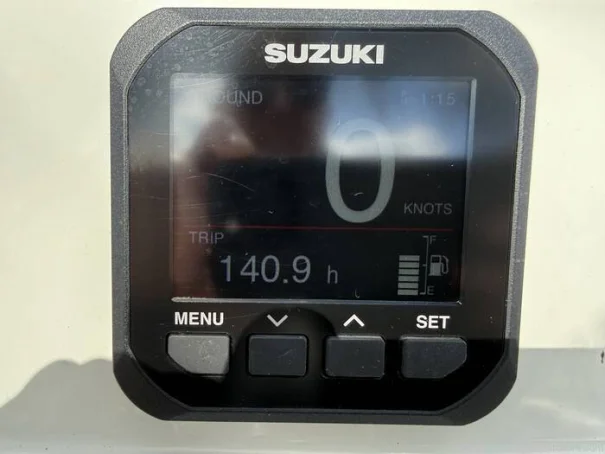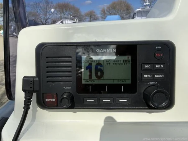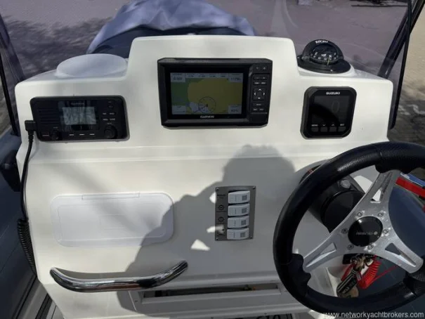 It also comes with the “Lux Pack” (overall cover (new), console and seat cover, grey non-slip decking, bow sundeck); S/S folding boarding ladder; Garmin VHF Radio & Antenna and Garmin 65cv GPS plotter.