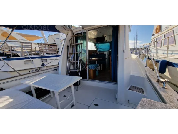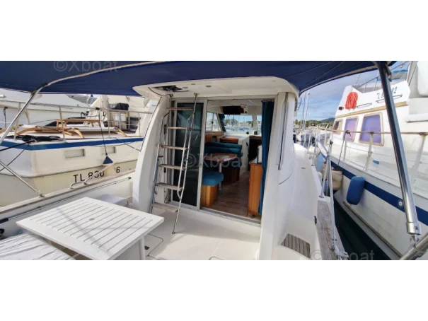 Bossoirs lourds pour annexe. Moustiquaires + rideaux pour tous les hublots. Bonne autonomie pour des croisières d’une semaine ou plus en famille. 2 télévisions, carré et cabine propriétaire. Carré transformable pour couchage supplémentaire.