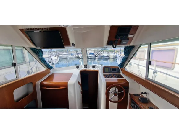 Bateau très marin, très bon passage en mer et très sécurisant, passes avants larges et gardes corps hauts et solides. Très bien pour la pèche. Bateau dont la réputation n'est plus à faire. Hélices Bronze 4 pales Carénage de 2025.