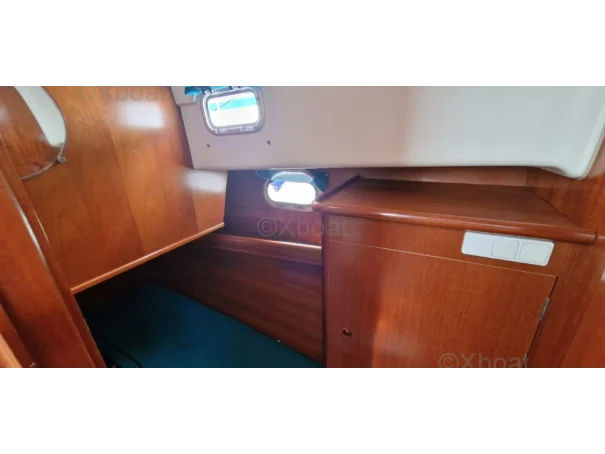2 cabines doubles. La cabine propriétaire à un accès privatif à la salle d'eau avec wc marin et douche. Réservoir eau douce 320 litres. Réservoir eaux noires 50L. Ballon d'eau Chaude sur échangeur moteur et électrique. Chauffage timonerie sur échangeur moteur avec désembuage. 2 Douchettes de pont eau chaude. Pompe de lavage eau de mer. Micro onde, machine à Glaçons. Gazinière Eno 2 feux gaz et four à gaz. Frigo top avec freezer.