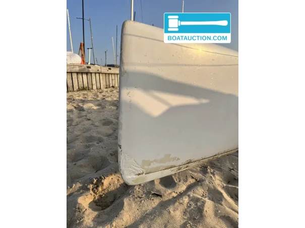 Elle est proposée prête à l’emploi via Boatauction, remorque routière incluse. La remorque est une Pega à un essieu avec éclairage fonctionnel, et elle est équipée d’un grand coffre de rangement pour les voiles, combinaisons et outils. C’est pratique pour ceux qui souhaitent stocker, transporter et gréer rapidement le bateau sur place. Une bâche de protection est également présente pour la garder propre entre les sorties. La documentation est partiellement disponible, notamment la facture d’achat et divers documents d’entretien, bien que l’ensemble ne soit pas complet.