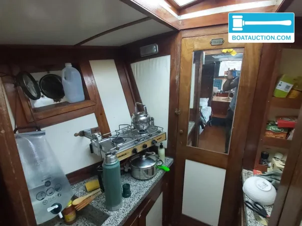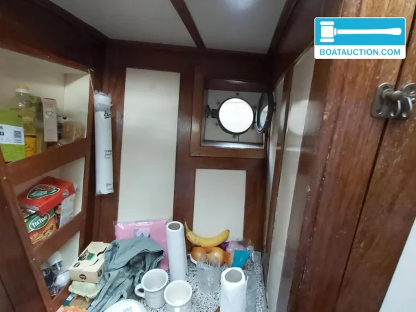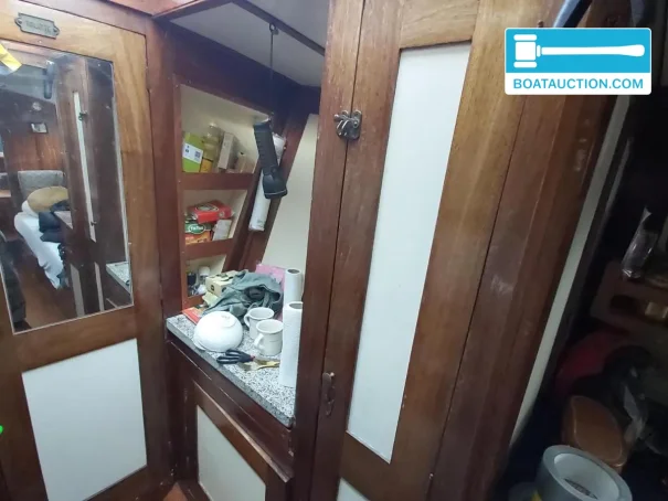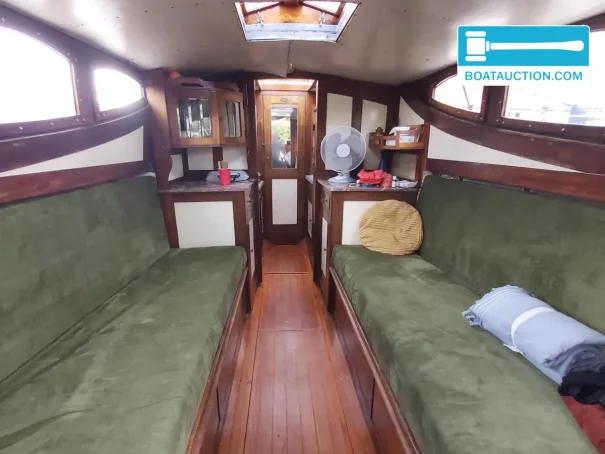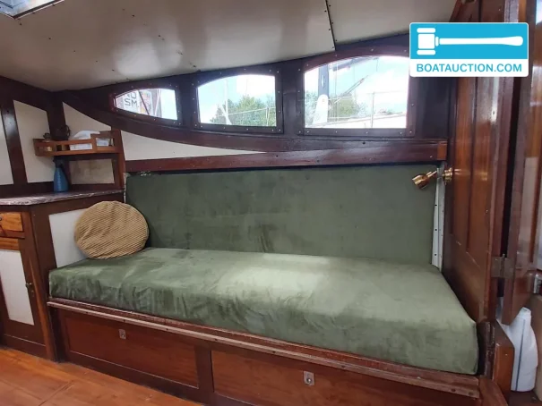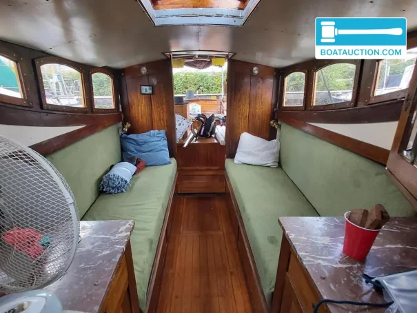 Son intérieur se distingue par sa finition et son ambiance d’origine, et non par une construction nautique standard plus récente. La combinaison de plans de travail en granito, d’accents en marbre et de verre taillé à facettes lui confère une allure classique qui convient parfaitement à un bakdekker de 1939. Les coussins renouvelés ont environ trois ans, ce qui apporte un confort d’assise et de couchage adapté à l’usage actuel, tout en conservant une apparence authentique. C’est exactement le type de « bakdekker classique avec intérieur d’origine » que recherchent de nombreux acheteurs lorsqu’ils souhaitent un bateau de caractère ou un patrimoine flottant.