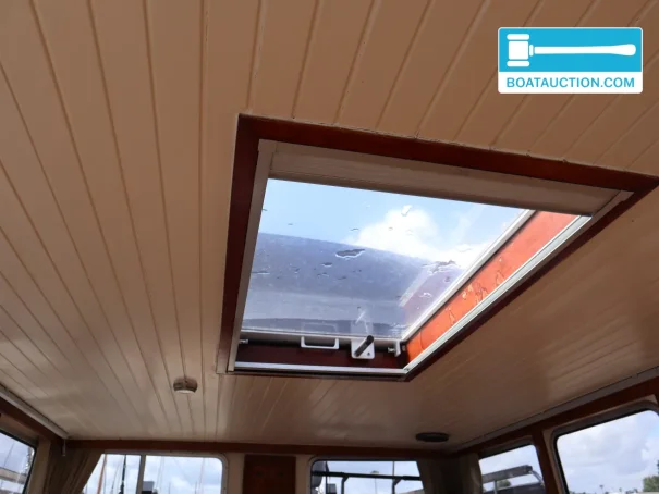 À l’intérieur, la hauteur sous barrots agréable se remarque immédiatement : environ 2,00 m. Cela rend la vie à bord confortable, même lors de séjours prolongés. L’aménagement est pensé pour le séjour et la navigation en compagnie. Il offre quatre couchages fixes et deux couchages supplémentaires, ce qui rend le Visserstrawler 1050 adapté à une famille ou à des invités. L’état indiqué est raisonnable, laissant de la marge à un acheteur souhaitant intégrer progressivement ses propres souhaits et aménager le bateau à son goût.