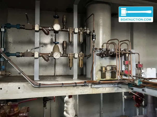 il dispose d’une installation électrique en 24 v et 220 v, incluant l’alimentation de quai, un alternateur, un chargeur de batteries et un voltmètre. trois batteries sont présentes. avec une capacité de carburant d’environ 8000 litres, il est en outre conçu pour de longues navigations, ce qui conviendra à ceux qui recherchent un grand remorqueur pour les voies intérieures ou une alternative à un yacht à moteur classique avec une grande autonomie. le chauffage n’est pas applicable, ce qui peut être pour certains acheteurs une invitation à choisir leur propre solution de chauffage en fonction de l’usage prévu.