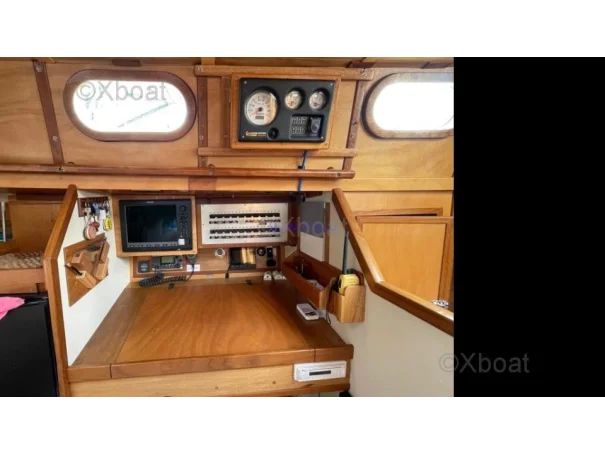 XBOAT ref :6317. Bateau à coque en acier et pont en acier - conçu pour les longs voyages - soudures de coque démontrables - bulbe rempli de plomb fondu, ballast de 3.4 tonnes - coque interne protégée contre la corrosion et l'oxydation - gouvernail d'une grande robustesse - plateforme arrière avec échelle - panneaux solaires -