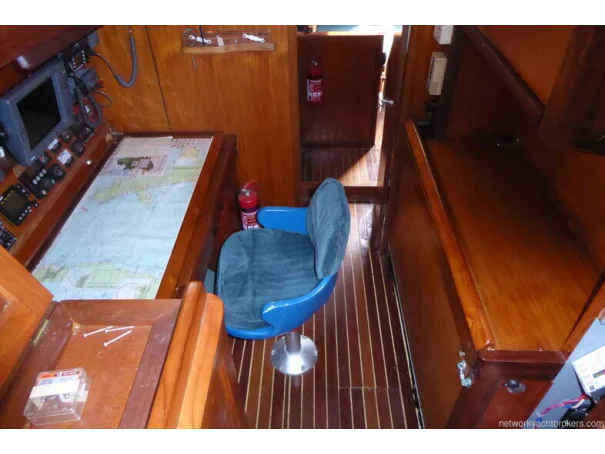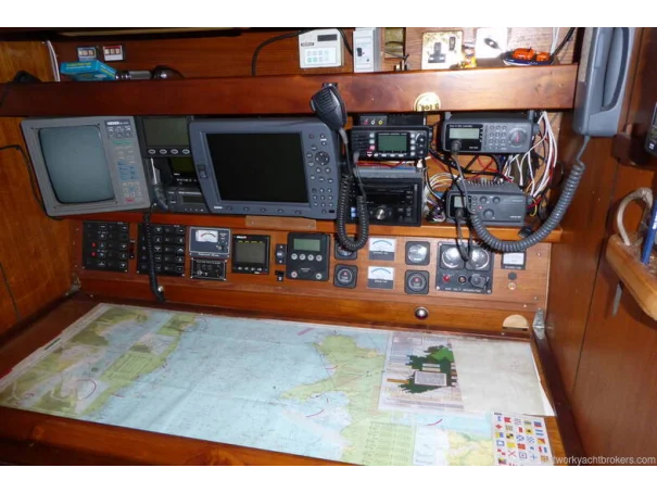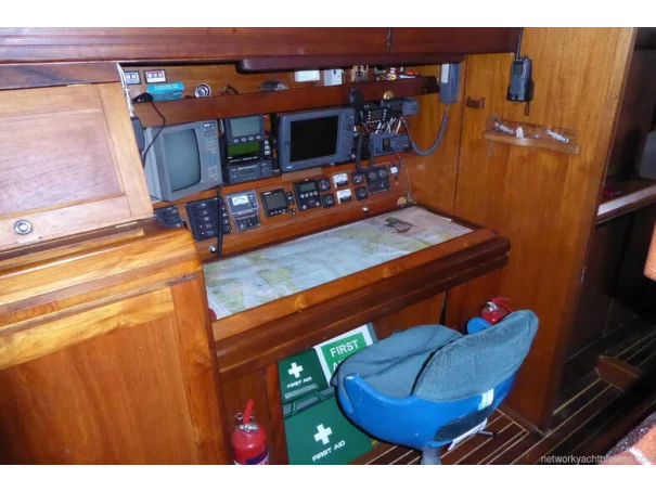 Inventory : 50kg Delta anchor. 80m chain. CQR 2nd anchor. Autopilot Robertson computer with Lewmar Integra Mamba 24V drive. Pedestal dome compass. Depth, log & wind. Instruments by Garmin & Silva. Electronic compass. Koden 4kw gimballed radar scanner. AIS transmission & receiver. VHF radio with antenna on top of mast. 2nd VHF with antenna on aft gantry. Garmin platter. Navtex HiFi with speakers in saloon, fore & aft cockpits. SSB radio. Navigation lights. Large main cockpit spray hood. Pram hood for aft cockpit Water proof cockpit cushions. Also soft cushions for main cockpit. Main cockpit table with drop leaf's. VIEWING BY APPOINTMENT WITH LEINSTER BOATS