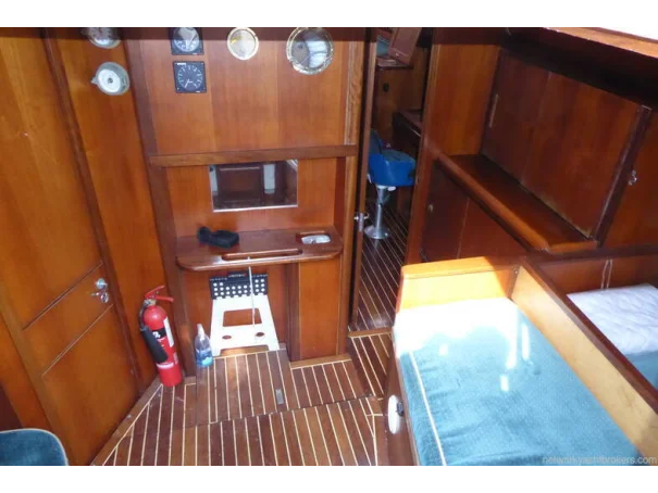 Mechanical : Perkins 6 cylinder diesel engine. 135 H.P. with 1175 hours. Borg Warner gear box with Aquadrive and thrust bearings 45mm stainless steel shaft with Gori three blade reverse pitch folding manganese bronze propellor. 2 X 24v Alternaotors. Ruggerini 5.5.KVA. 2 hours supplying 12 V battery charging and 220V system. ! main engine battery. 2 X general 24V supply. Generator 12V start. 24v bow thruster battery Sleipner EX180 external pot thruster 24V Pacific 3000 24V windlass power up & down. Lewmar Mamba solid shaft steering.