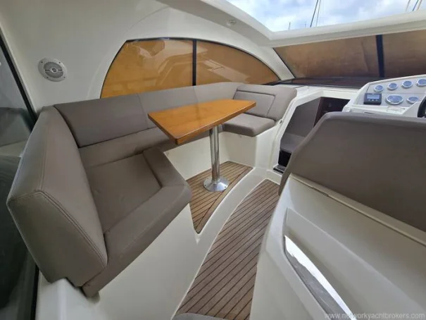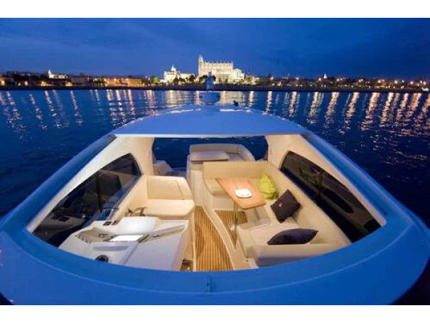 Son hardtop sportif avec toit ouvrant électrique s’accompagne d’un cockpit spacieux doté d’assises convertibles en bain de soleil. À l’arrière, un réfrigérateur supplémentaire ainsi qu’un barbecue extérieur et un évier astucieusement intégrés renforcent l’expérience de convivialité à bord, créant une véritable continuité entre intérieur et extérieur, idéale pour la croisière méditerranéenne et la détente.