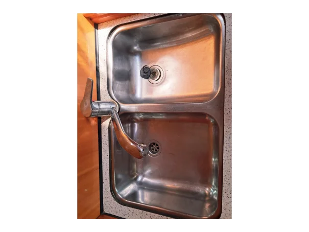 Well-equipped galley with hob, oven, sink, and refrigerator (new 2025). Pressurised hot and cold water system via calorifier. Additional onboard comfort provided by Ecoflow Wave 3 portable air conditioning unit (2025). Entertainment includes stereo and TV with aerial.