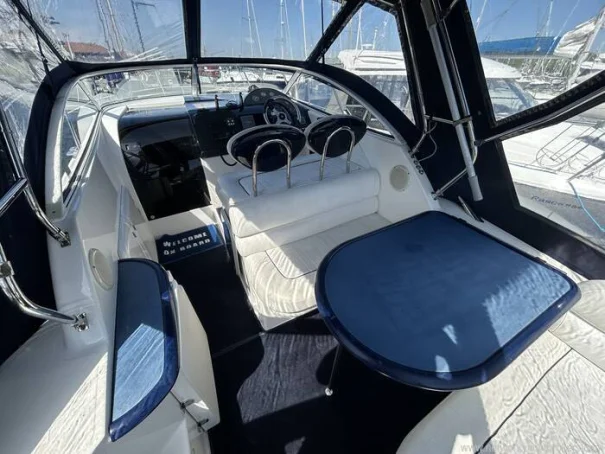 She boasts a very high specification which includes just some of the following, Bow thruster, Webasto heating inside and in cockpit, Mente marina automatic trim tabs, full cockpit enclosure, Raymarine plotter, Icom fixed VHF, carpet in cockpit and down below and cockpit fridge. She has also had a complete engine overhaul and rebuild of all main parts including cylinder liner kit, filters, belts, injectors, hoses and much more. All invoices and documents can be provided for these works.