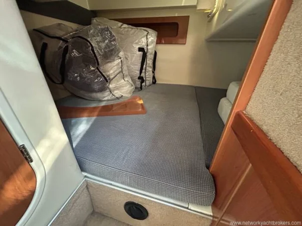 The accommodation comprises of a double berth mid cabin which is under the helm position. There is another forward double berth which is made by converting the dinette area in the main cabin by placing a cushion on top of the lowered down table.