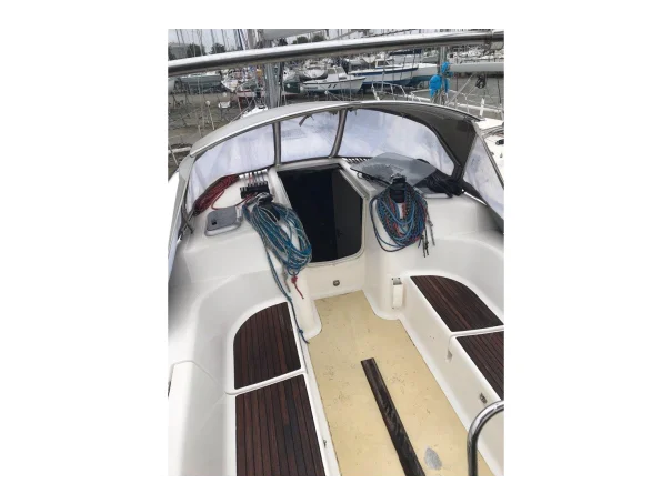 This particular boat has lived a full life. She has crossed the Atlantic solo, wintered ashore every season, and been looked after by owners who understood what they had. The result is a vessel that carries her 22 years lightly.