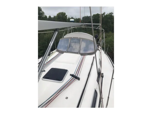 Full batten mainsail with three reefing points - reefs two and three operable from the cockpit without leaving the helm. Furling genoa on Facnor furler. Both in Dimension Polyant DCX tri-radial and like new. Symmetrical spinnaker in good condition. Storm jib on removable stay, barely used.