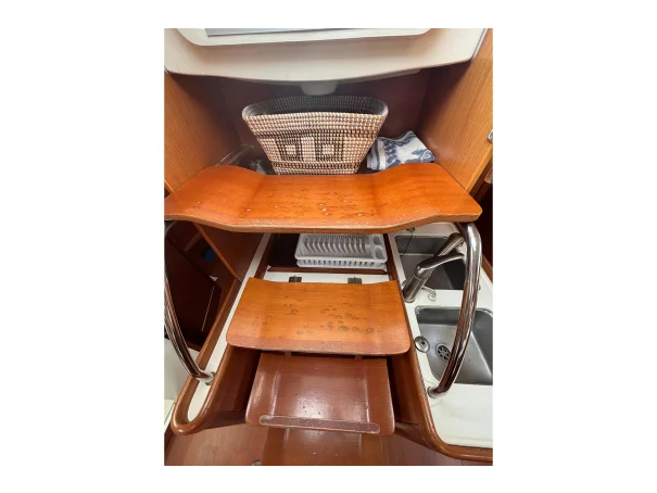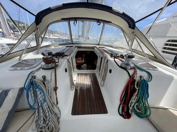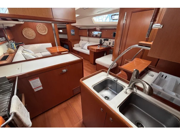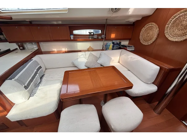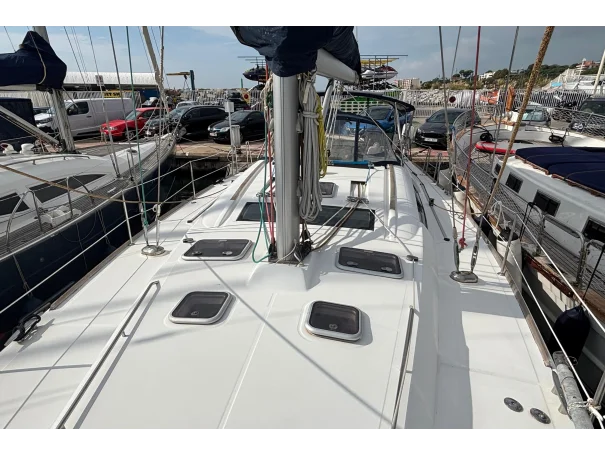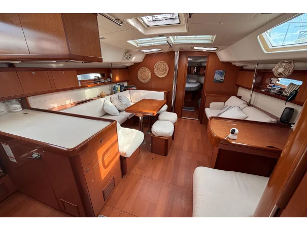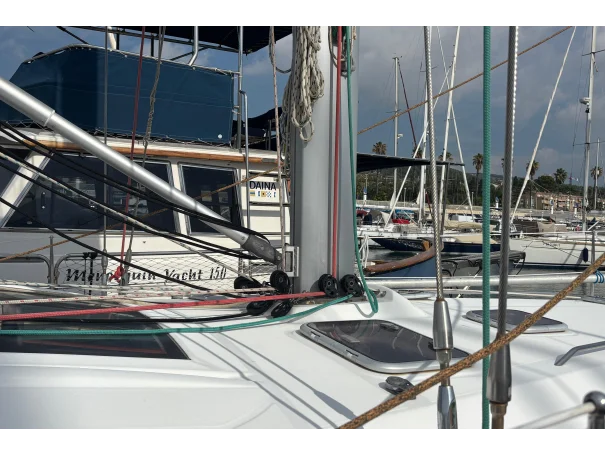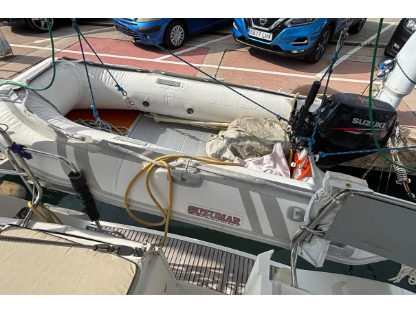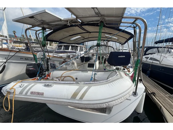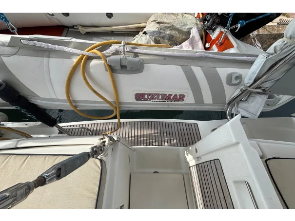 The Beneteau 49 represents an era of genuinely exceptional Beneteau sailing yachts. The profile and look of the hull and deck, designed by Berret/Racoupeau, were modernised while retaining the significant assets that have made Beneteau yachts admired for decades. Below decks, the boat drew excellent lines, featured brilliant woodwork, and used superb materials, elevating the Beneteau 49 to a new level of interior luxury. The owner bought a 2011 Suzuki 4-cylinder, 15-hp engine for the dinghy. The engine impeller has been replaced, the turbocharger has been overhauled, and the anodes have been replaced. In April 2024, the antifouling was done in conjunction with propeller maintenance and anode replacement.