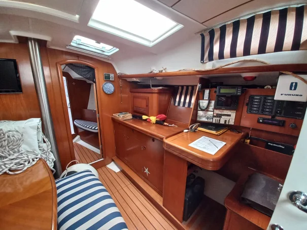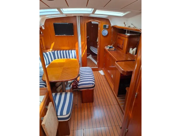 The Oceanis Clipper 393 offers a practical and comfortable layout with two spacious cabins, a well-appointed saloon, and a functional galley, ideal for extended stays on board.
