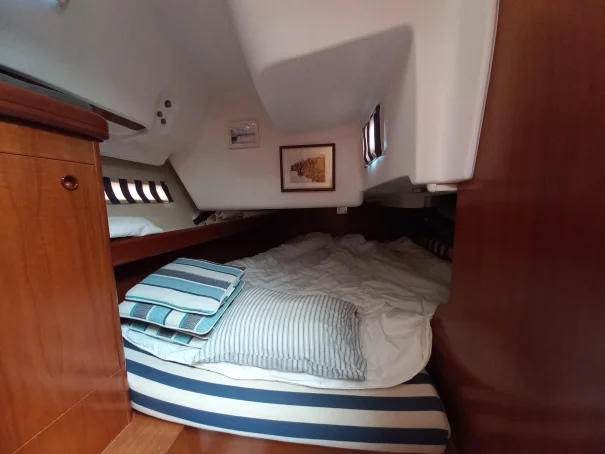 Fore cabin with ensuite heads and shower. Plenty of room for guests.