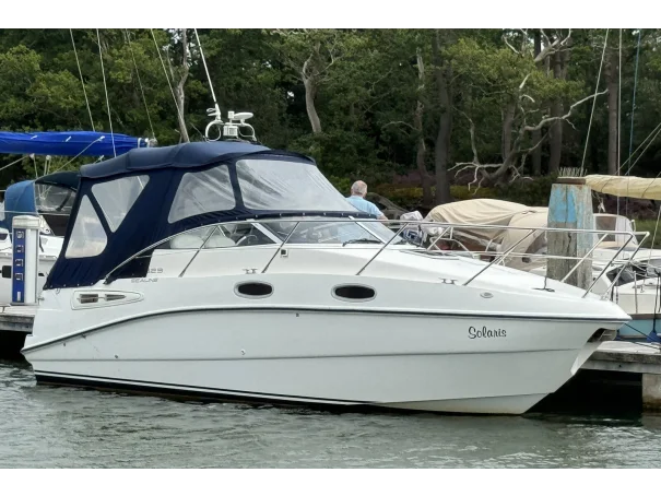 The Sealine 23 sleeps four . The aft cabin is a double and the saloon converts into a large double berth. The saloon has a removable dining table. The heads has a Jabasco sea toilet and a hot water shower.
